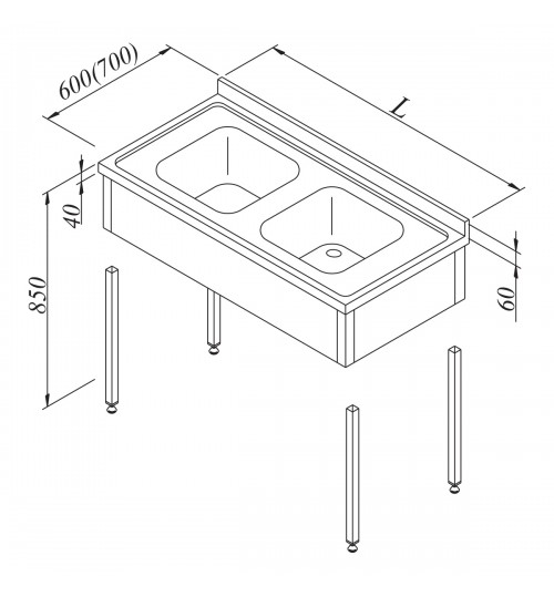 * Üst tablaya 2 adet 500x500x300 mm ölçülü pres baskı monoblok evye gözü dikiş kaynak yöntemiyle kaynaklı